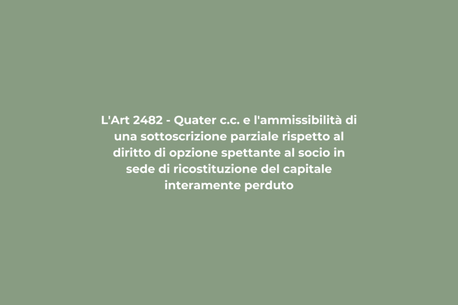 Una tecnica diffusa nella prassi per regolare il fenomeno del subentro degli eredi nella titolarità della partecipazione del capo famiglia, evitando l’implementazione del numero dei soci che rende farraginosa la…